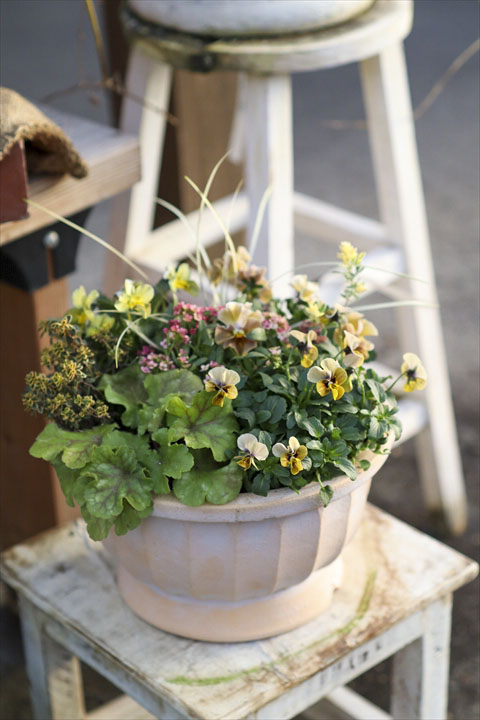シックなクラシックイエローの寄せ植え♫